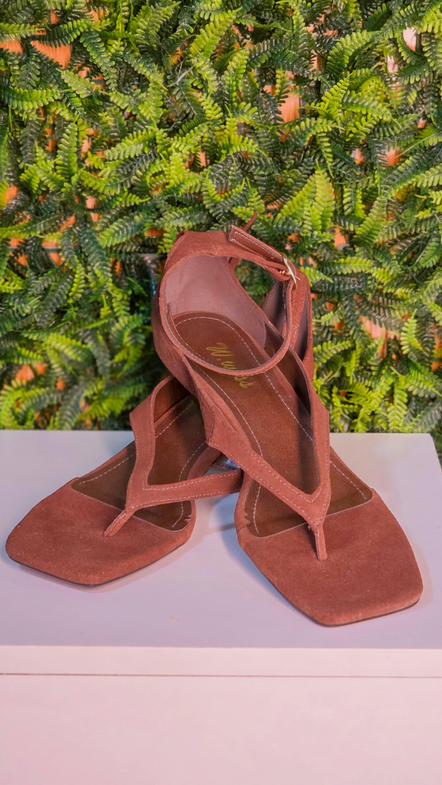 Sandália feminina de tiras em material sintético com acabamento aveludado, na cor marrom. O modelo possui solado rasteiro e emborrachado, com leve elevação traseira que proporciona mais conforto e estabilidade ao caminhar. De biqueira quadrada, apresenta cabedal com design moderno em tiras finas que se cruzam sobre o pé, formando um visual delicado e elegante. O modelo conta ainda com tira ajustável no tornozelo com fivela metálica, garantindo melhor ajuste e segurança ao calçar. Com palmilha macia e aberta, a sandália valoriza o pé e traz leveza para as produções do dia a dia.
