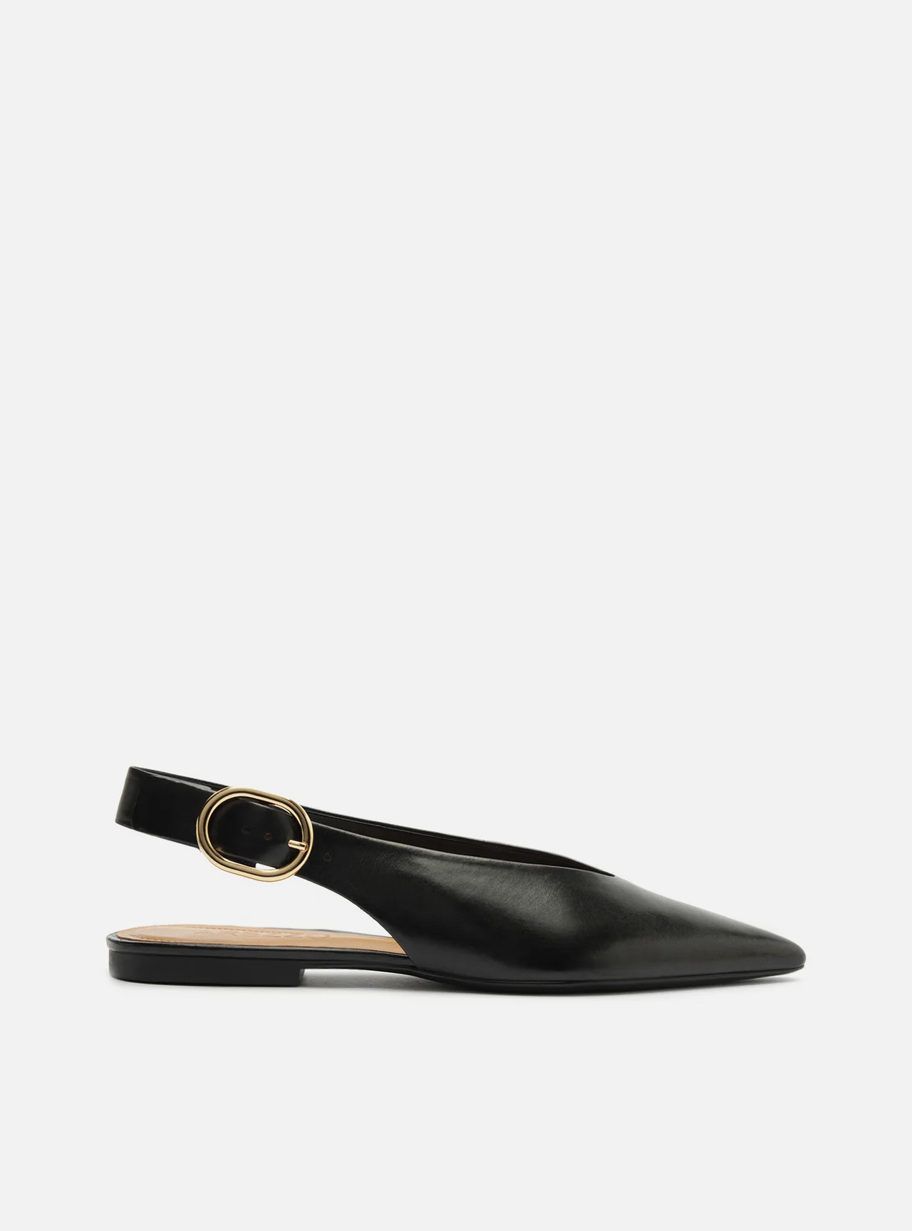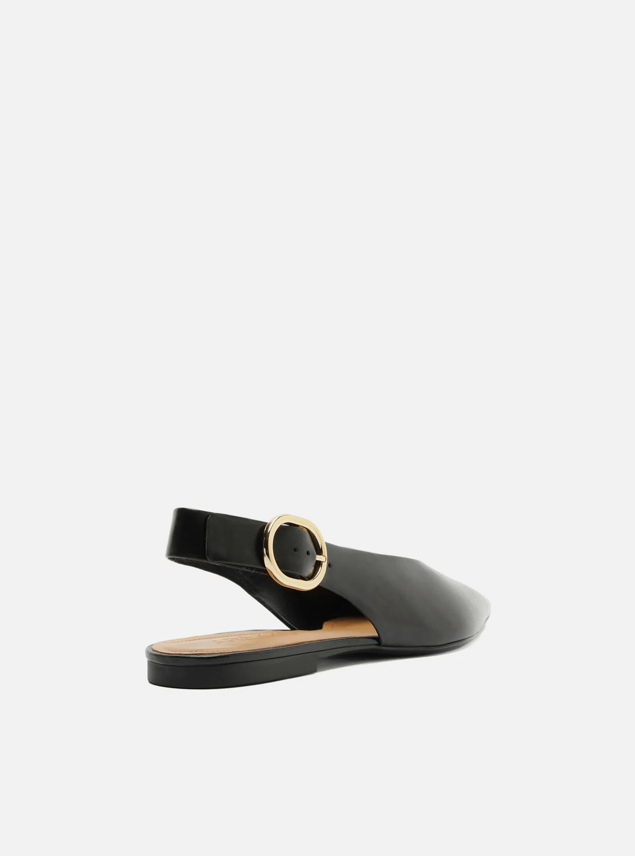 Sapatilha Preta Couro Slingback Bico Fino Becca